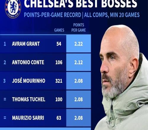 82战场均2.04分,马雷斯卡超越安帅升至切尔西队史主帅第6位