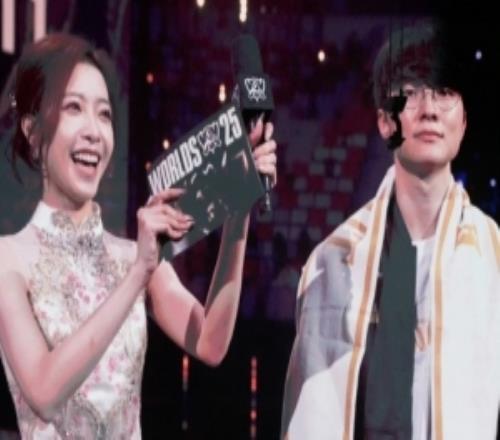 电竞体育11月10报道 主持人希然分享赛场照片,并配文:恭喜T1 英雄联盟全球总决...