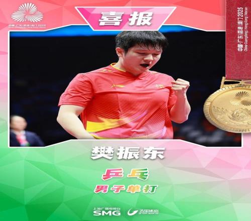 第十五届全国运动会乒乓球男子单打决赛,上海队樊振东4比1击败海南队林诗栋,一举夺冠!