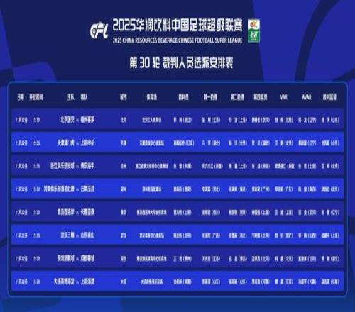中超第30轮裁判选派:外籍裁判执哨争冠战,本土裁判吹保级大战