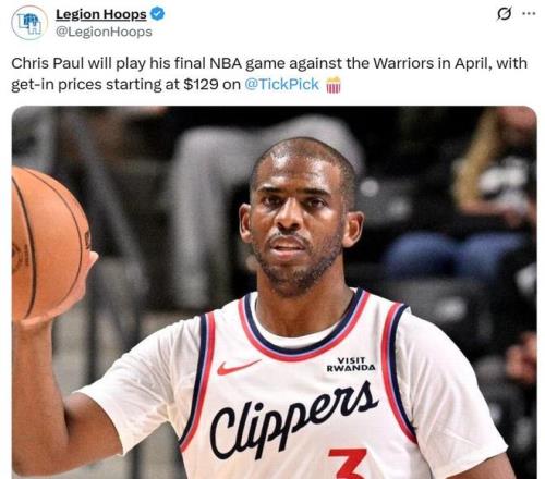 因此保罗宣布退役后引起广泛热议,目前保罗生涯谢幕战,也就是快船常规赛最后一场对阵勇士的比赛,最低票价已涨至129美元。