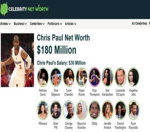 按照《celebritynetworth》计算,在生涯薪资总收入超过4亿的情况下,目前保罗净资产已经达到1.8亿美元。