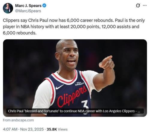 面对这名老将的退役,快船记者Jamal Cristopher发文称赞道:“他是篮球史上最伟大的球员之一,以他这样的身材达到这样的高度,能够与CP3真是我的荣幸。”