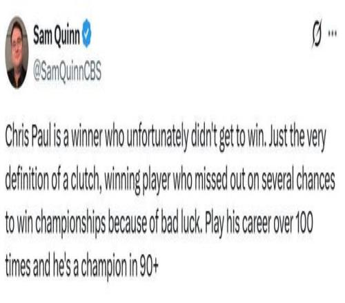 记者Sam Quinn也感叹到:“保罗是真正的赢家,唯一的遗憾是没有赢得过冠军,但他完全符合赢家标准,如果生涯重来100次,那么保罗至少会有90次拿到总冠军,他只是差了一点运气而已。”