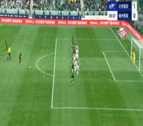 上半场伤停补时阶段,从球场另一侧,王刚突破传中,法比奥头球完成梅开二度,攻入赛季第26球。